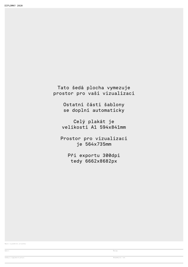 Hlavním materiálem pro rozhodování poroty jsou dva A1 plakáty. Na každém plakátu je jednotná hlavička a patička s údaji z první části přihlášky. Pod hlavičkou je prostor pro grafickou prezentaci vašeho projektu.